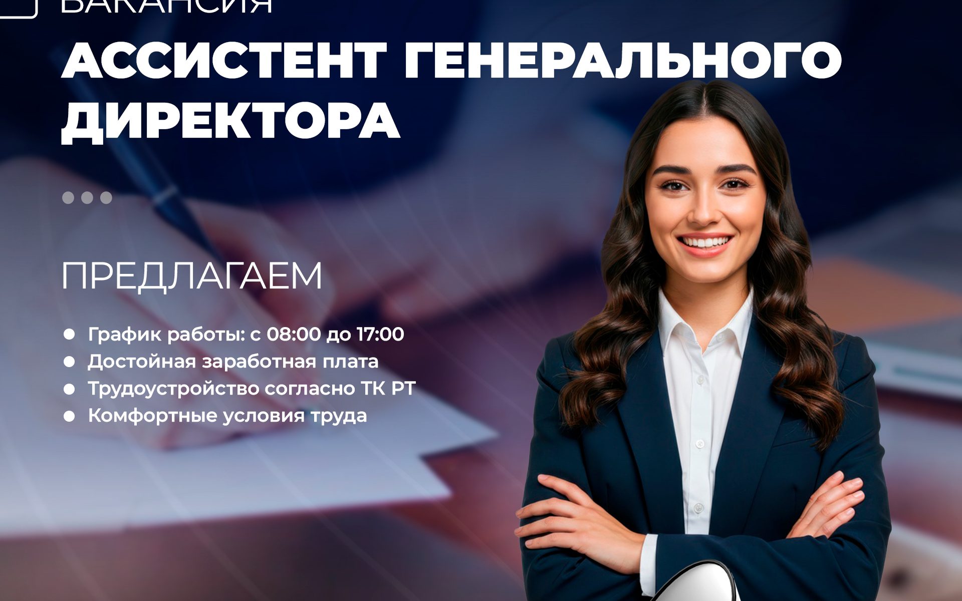 Мы открываем вакансию Ассистента генерального директора.