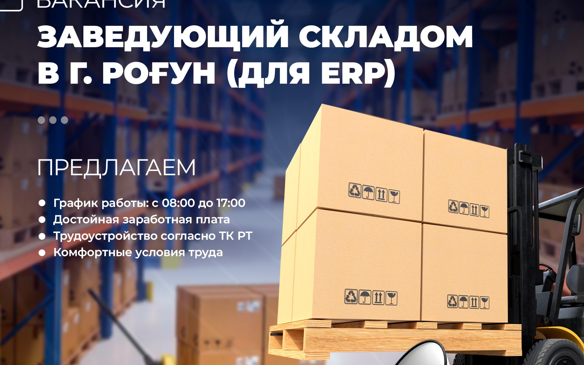 Мы открываем вакансию Заведующего складом (для ERP) в г. Рогун.