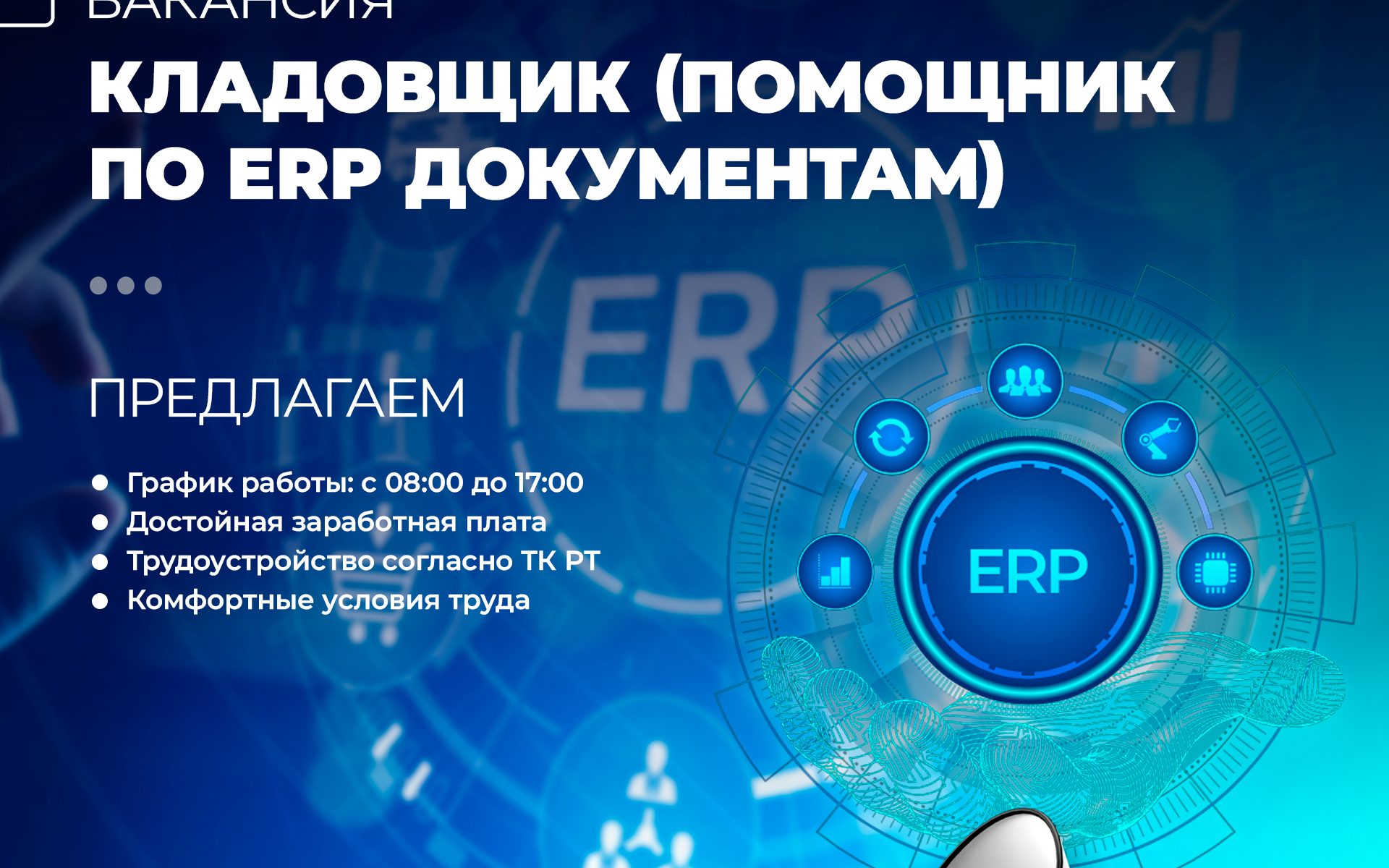 Мы открываем вакансию Кладовщика (помощника по ERP-документам).